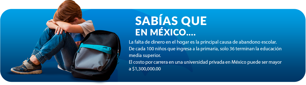 El Seguro de Vida que ayuda a nuestros clientes a formar un ahorro garantizado para pagar la educación profesional de sus hijos, nietos o sobrinos. Además de estar cubierto el riesgo de fallecimiento del contratante y del menor.